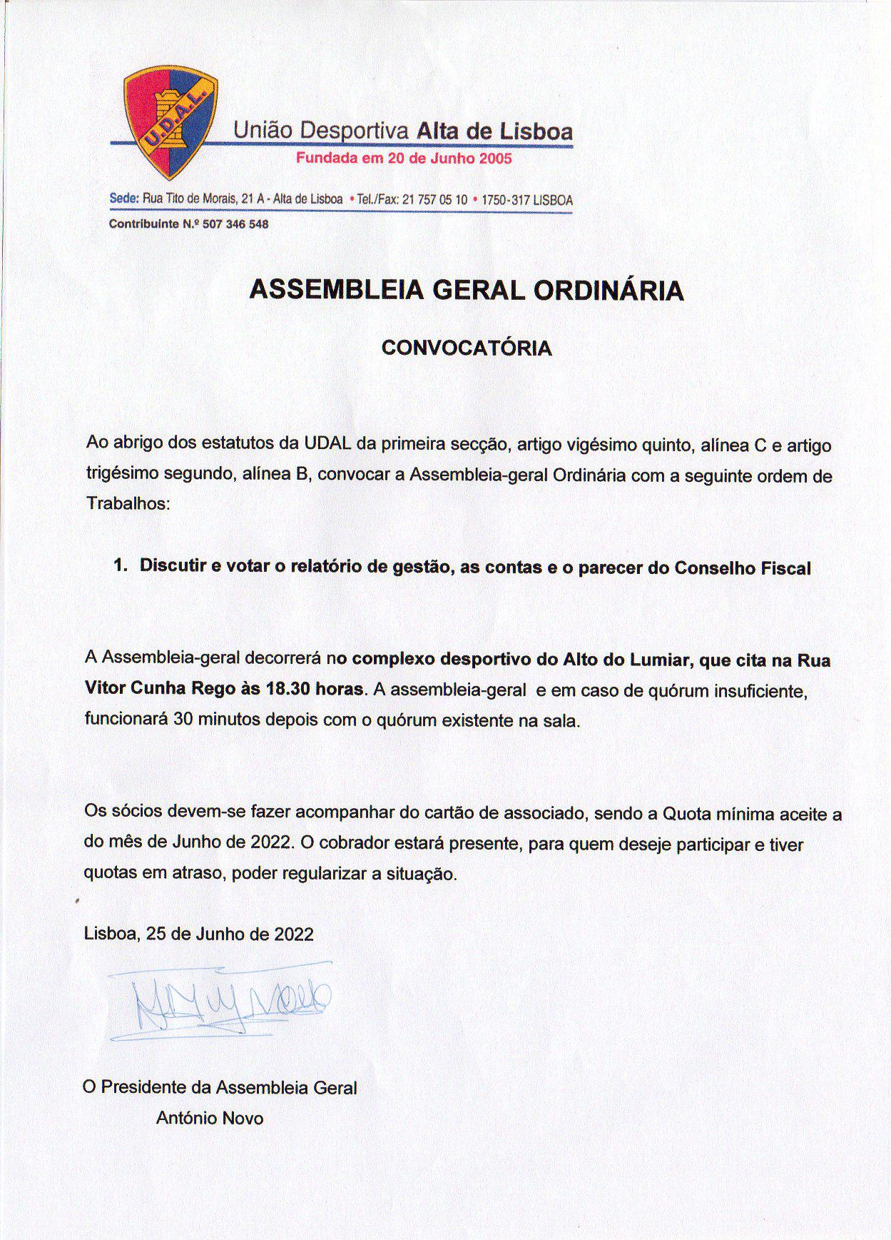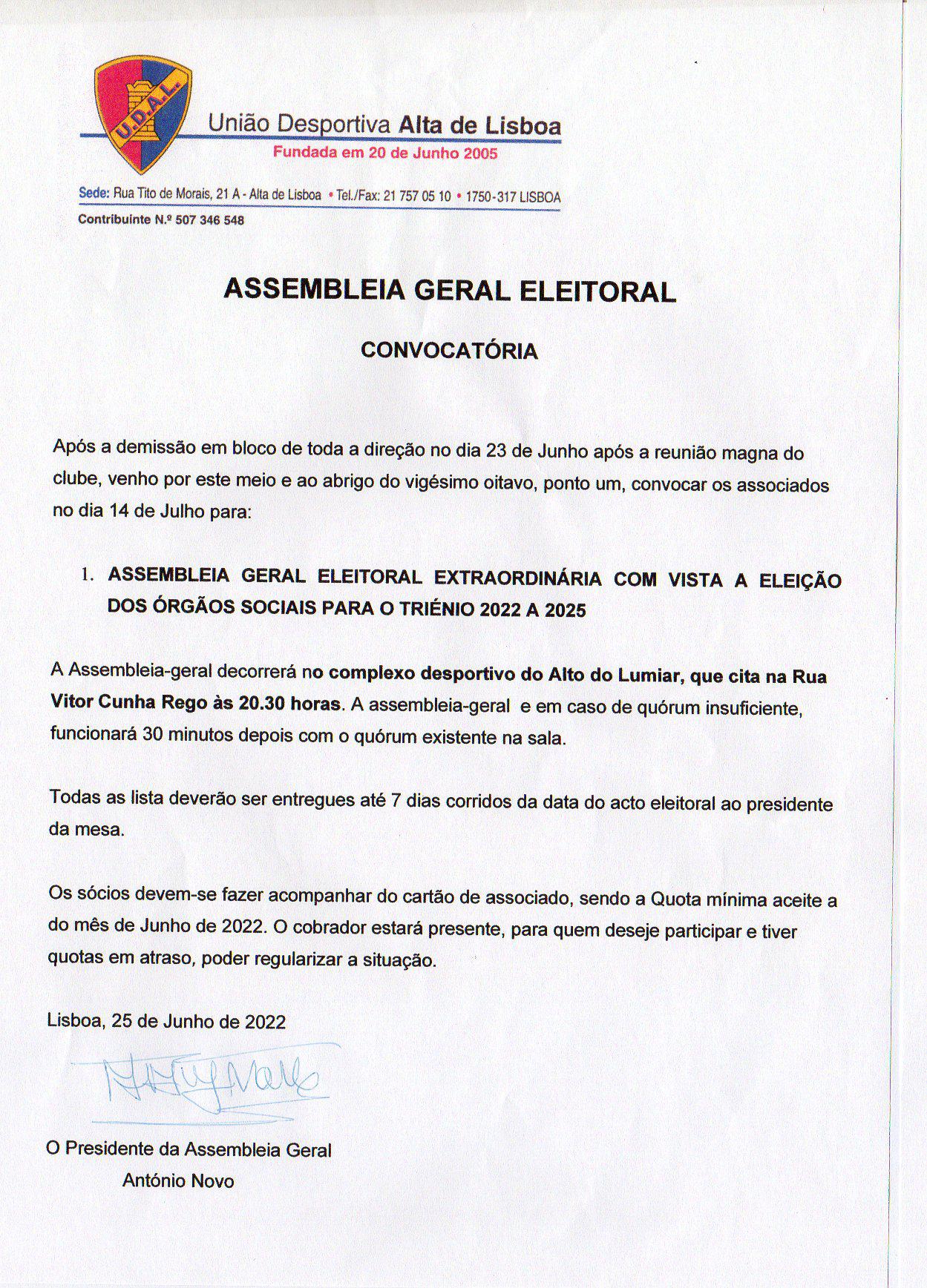 Irão decorrer no dia 14 de julho duas Assembleia Geral de Associados.